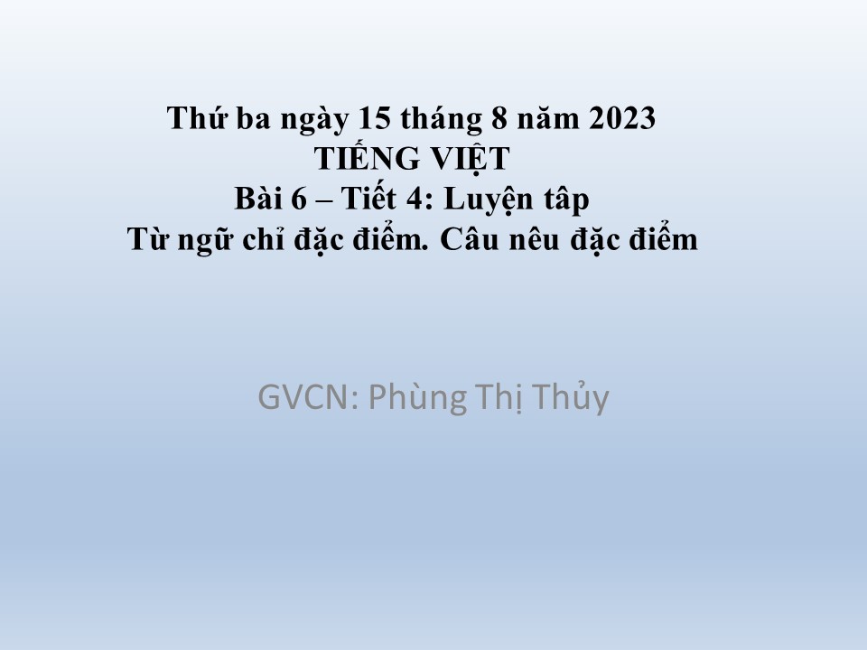 Bài 6: Tiết 4: Luyện tập Từ ngữ chỉ đặc điểm, Câu nêu đặc điểm