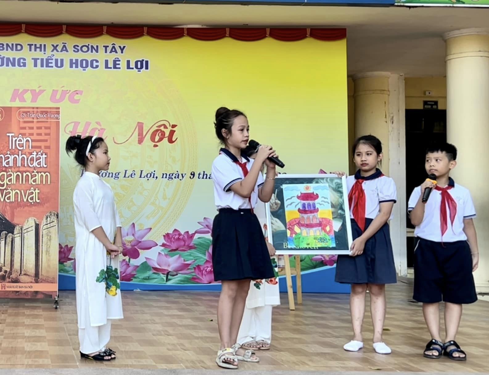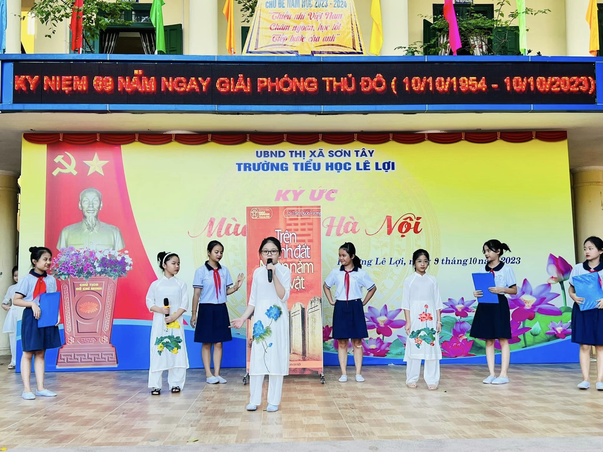 Chào mừng 69 năm ngày Giải phóng Thủ Đô (10/10/1954 - 10/10/2023) liên đội trường TH Lê Lợi tổ chức chương trình “KÝ ỨC MÙA THU” đội tuyên truyền măng non đã kể lại cuốn sách mang tên “Trên mảnh đất ngàn năm văn vật” và giới thiệu về Hà Nội qua những bức tranh do hoạ sĩ nhí thể hiện tài năng.