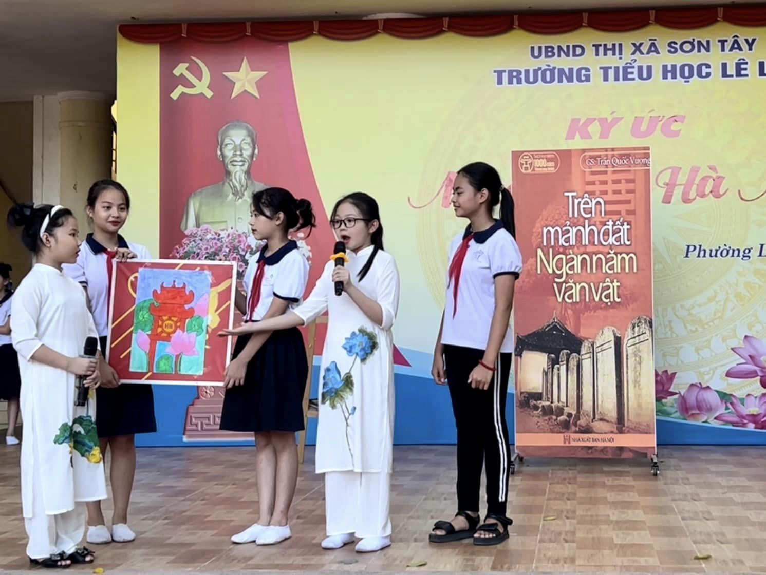 Trong chương trình, đội tuyên truyền măng non đã kể lại cuốn sách mang tên “Trên mảnh đất ngàn năm văn vật” và giới thiệu về Hà Nội qua những bức tranh do hoạ sĩ nhí thể hiện tài năng.