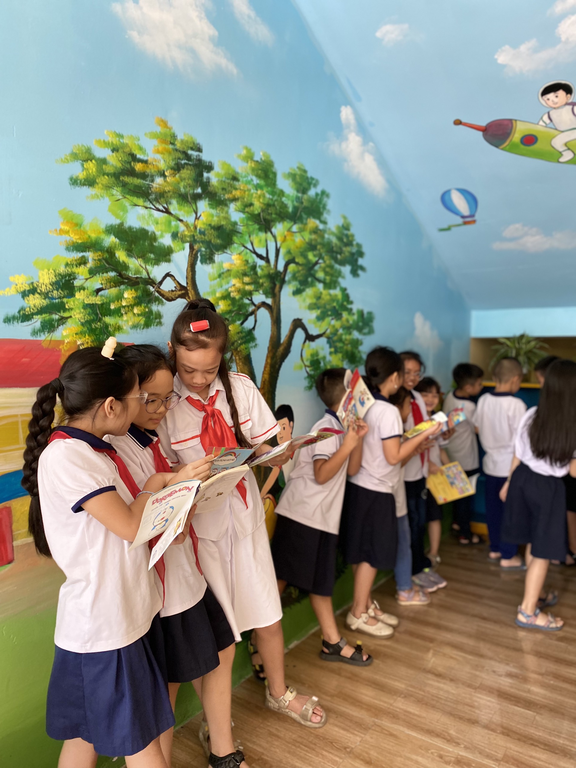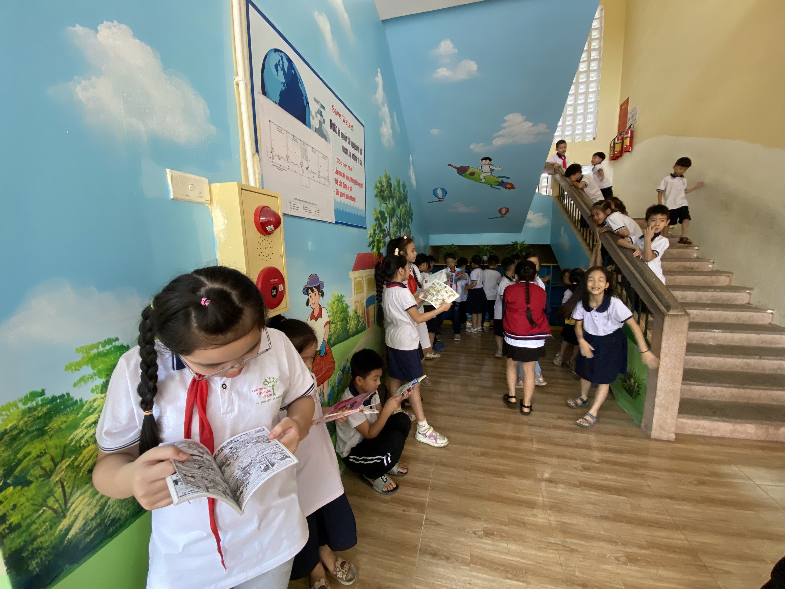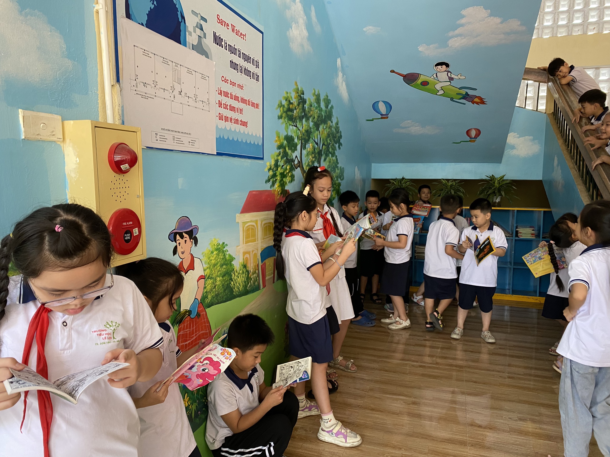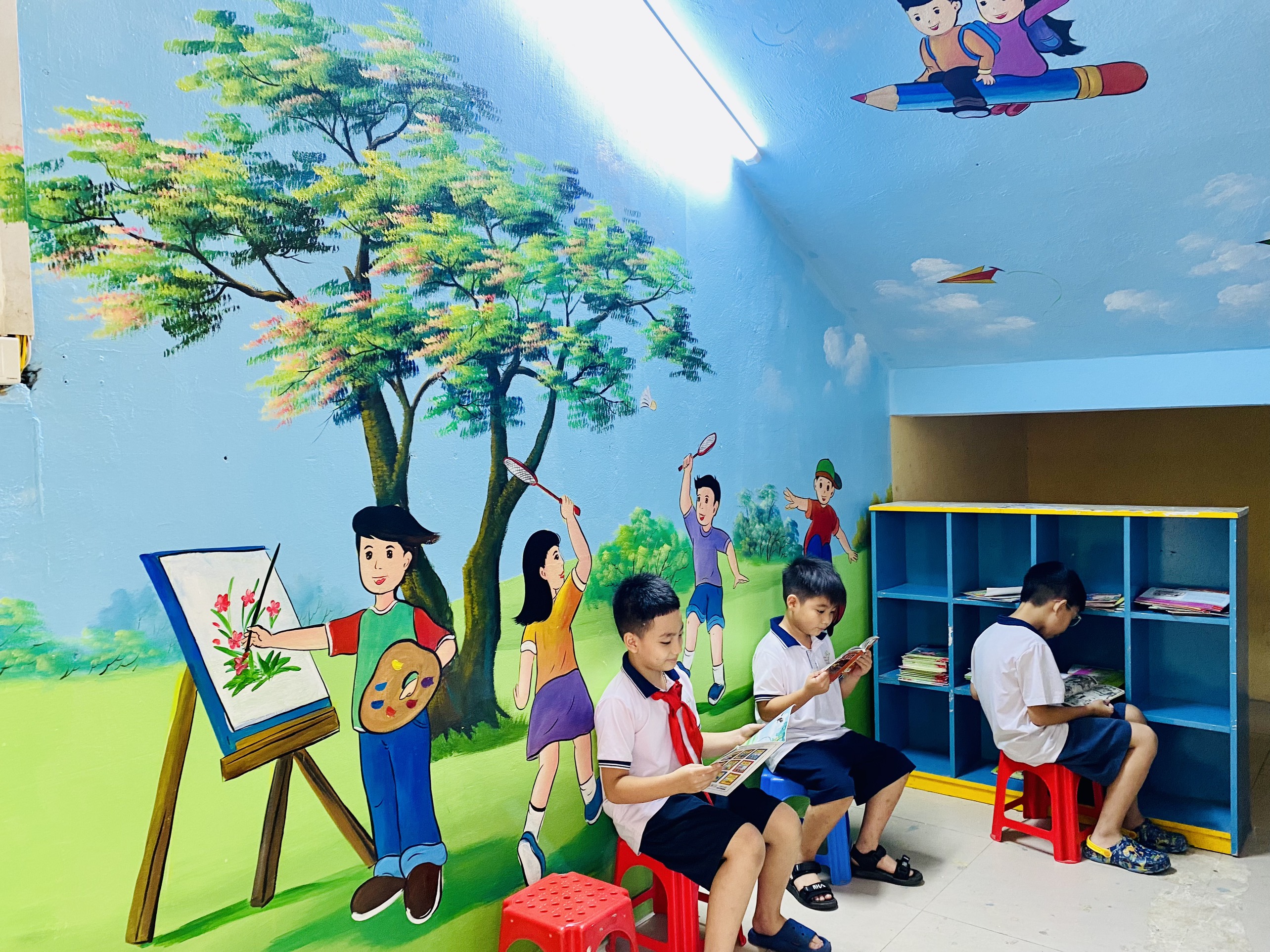 “Góc thư viện cầu thang ” được tận dụng ngay tại trường học, dễ dàng, thuận lợi cho việc đọc sách trong giờ ra chơi hoặc chờ đón bố mẹ khi tan học. Điều quan trọng,học sinh đã dần hình thành thói quen đọc sách. Mỗi góc thư viện đều được trang trí bắt mắt và thu hút, hấp dẫn các em học sinh.